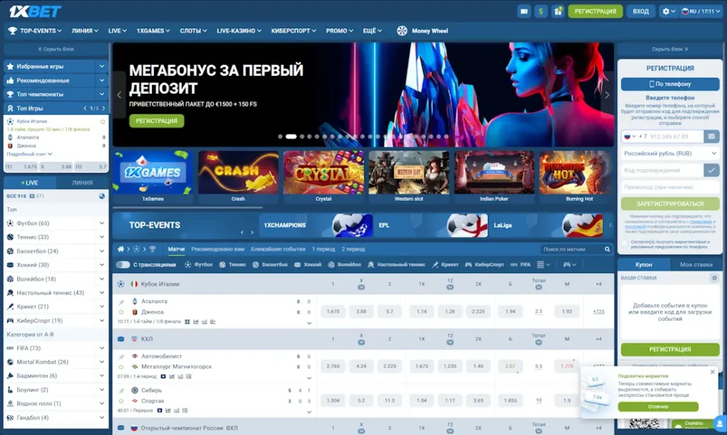 Официальный сайт 1xBet — надежное лицензированное заведение, предлагающее ставки на спортивные и киберспортивные события с 2007 года. Платформа обслуживает более 400 000 активных пользователей и предоставляет широкие линии с высокими коэффициентами на топовые турниры. Маржа букмекера составляет 4-7%, что является одним из лучших показателей на рынке.